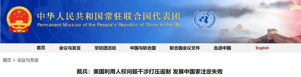 来源:中华人民共和国常驻联合国代表团网站