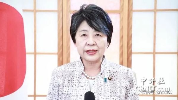 日本外务大臣上川阳子作视频致辞(中评社 海涵摄)