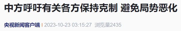中国政府中东问题特使 翟隽:中方反对和谴责一切伤害平民的行为,反对任何违反国际法的做法,呼吁有关各方保持冷静克制,避免局势进一步恶化甚至失控,引发更加严重的人道主义灾难。