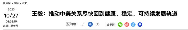 王毅说,这次应邀访美是对布林肯国务卿6月访华的回访。中美两个大国有分歧,有矛盾,同时两国也有重要共同利益,有需要共同应对的挑战。为此,中美需要对话,不仅应恢复对话,还要深入对话,全面对话,通过对话增进相互了解,减少误解误判,不断寻求扩大共识,开展互利合作。推动两国关系止跌企稳,尽快回到健康、稳定、可持续发展轨道。