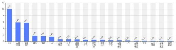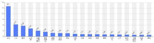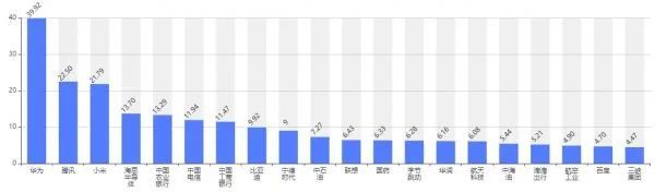 9月,中国企业在社交媒体中网帖语种数量为32种,较上一监测周期(37种)小幅下降。其中,小米、华为及腾讯形成该指标的“第一梯队”,与其他企业相比优势明显。