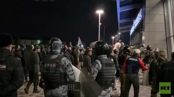马哈奇卡拉机场反犹太活动画面,RT报道配图