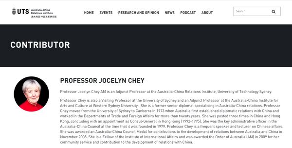 作者Jocelyn Chey照片及个人介绍(悉尼大学澳大利亚-中国关系研究院官网)