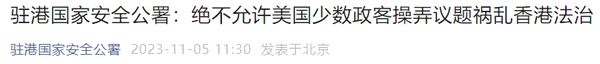 驻港国家安全公署:绝不允许美国少数政客操弄议题祸乱香港法治