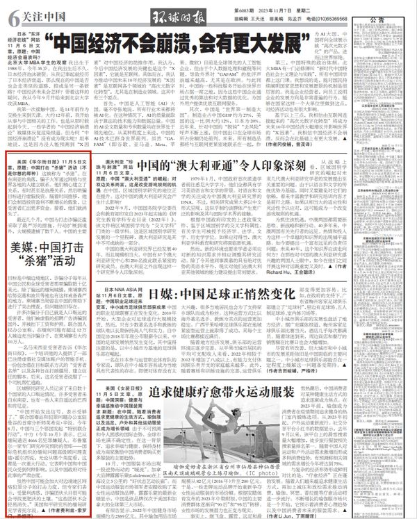美国《华尔街日报》11月5日文章,原题:中国打击“杀猪”活动(不是你想的那种)。