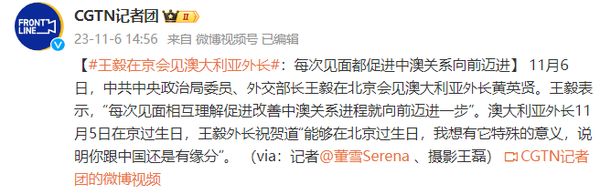 澳外长11月5日在北京过生日,王毅祝贺:说明你跟中国有缘分。11月6日,中共中央政治局委员、外交部长王毅在北京会见澳大利亚外长黄英贤。……