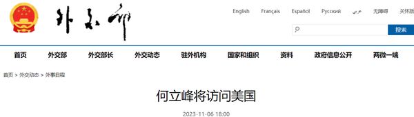 应美国财政部部长耶伦邀请,中共中央政治局委员、国务院副总理、中美经贸中方牵头人何立峰将于11月8日至12日访问美国。