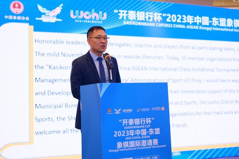11月7日,开泰银行杯·2023年中国-东盟象棋国际邀请赛在深圳罗湖香格里拉酒店开幕。中国、印度尼西亚、马来西亚、菲律宾、泰国、新加坡、柬埔寨、缅甸、越南等9个国家的10支象棋协会队将在4个比赛日为赛事桂冠发力冲击。