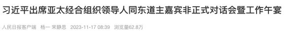 当地时间11月16日中午,国家主席习近平在旧金山出席亚太经合组织领导人同东道主嘉宾非正式对话会暨工作午宴。