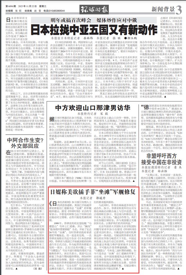 《日本经济新闻》21日援引知情人士的消息报道称,美国已开始就菲律宾修复在仁爱礁非法“坐滩”的军舰提供建议。接受《环球时报》采访的专家表示,不管是何种势力出于何种目的在搅动对立情绪,必然只能是荒唐的闹剧。