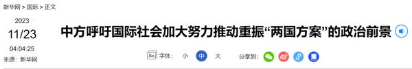中方呼吁国际社会加大努力推动重振“两国方案”的政治前景