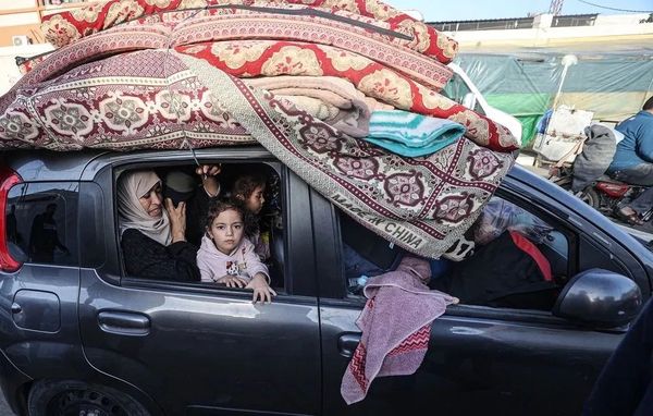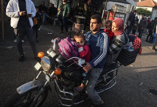 当地时间2023年11月24日,加沙地带南部汗尤尼斯,加沙地带停火协议正式生效,人们带着家人回到家园。