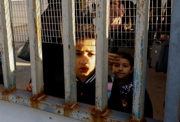 当地时间2023年11月21日,加沙南部,人们在拉法口岸等待入境埃及。