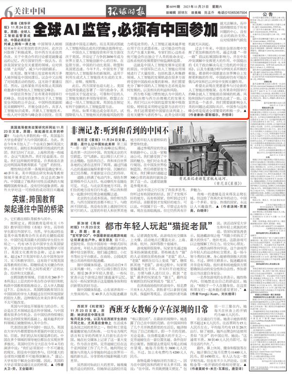 香港《南华早报》11月24日文章,原题:全球人工智能监管要成功,中国必须在谈判桌上拥有一席之地。