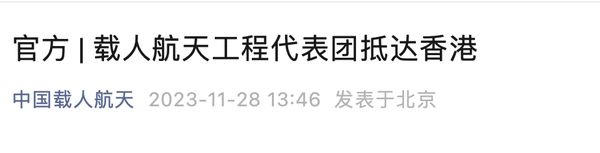 11月28日中午,载人航天工程代表团抵达香港,开启对港澳为期6天的访问。这是自2012年神舟九号载人交会对接任务代表团访问港澳后,载人航天工程时隔11年又一次组织的访港澳活动,也是工程进入空间站时代首次赴港澳交流互动。