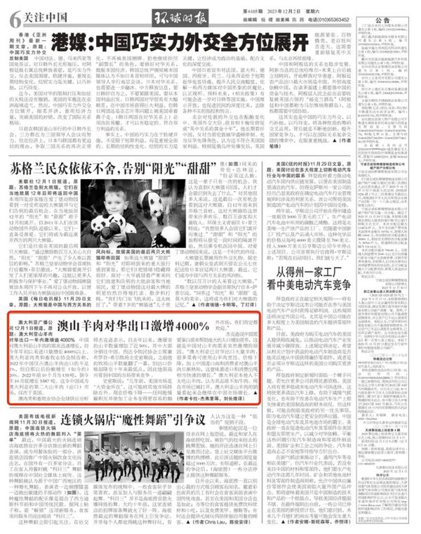 澳大利亚广播公司12月1日报道,原题:澳大利亚山羊肉对华出口一年内激增逾4000%中国对澳大利亚山羊肉的需求迅速增长,自今年年初以来进口量增长4000%以上。……