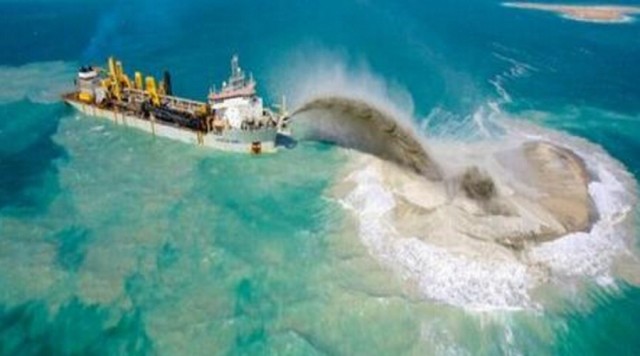 目前,我国控制的几个南沙主要岛礁均已经建起了边长数百米的大型人工岛,填海面积和规模远超周边国家近年来填海的总和。