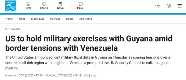 据多家外媒报道,美国驻圭亚那的大使馆于当地时间12月7日突然宣布,美军南方司令部将与圭亚那国防军在当天举行联合空中军演。