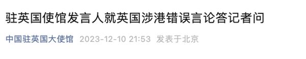 驻英国使馆发言人就英国涉港错误言论答记者问记者:据媒体报道,英国外交发展部发言人声称,……
