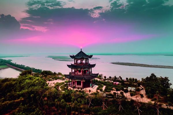 虎牢关景区夕阳楼远景。夕阳楼是古代郑州名胜之一,始建于北魏,是唐宋八大名楼之一,旧址在郑州火车站附近的郑州商城内城西南角。现夕阳楼为后世重建