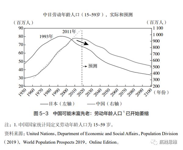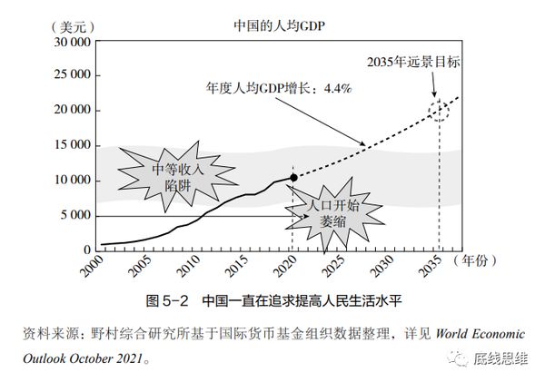日本例子的指导意义在于,预计最早将于2022年开始的总人口下降将拖累由人口增长带来的那部分经济增长。如果中国不能在人口因素带来的经济增长势头消失前走出中等收入陷阱,那么作为社会负担不断加重的老龄化国家,可能难以实现人均GDP在2035年达到20000美元的目标。