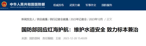 美方欢迎中国在阻止胡塞武装袭击红海船只方面发挥建设性作用,国防部回应