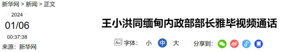 国务委员、公安部部长王小洪5日同缅甸内政部部长雅毕视频通话。