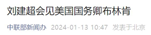 刘建超会见美国国务卿布林肯当地时间1月12日,中共中央对外联络部部长刘建超在华盛顿会见美国国务卿布林肯。……
