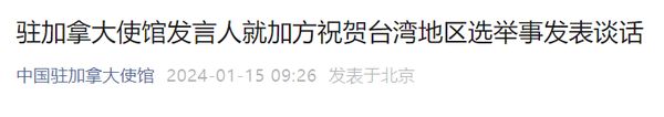 驻加拿大使馆发言人就加方祝贺台湾地区选举事发表谈话台湾地区选举结果揭晓后,加拿大外交部表示所谓祝贺。……