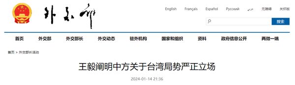 有记者问及中方对台湾地区领导人选举后两岸关系和台湾局势的看法,王毅表示,台湾地区选举是中国的地方事务。不管选举结果如何,都改变不了世界上只有一个中国、台湾是中国一部分的基本事实,都改变不了国际社会坚持一个中国原则的普遍共识。