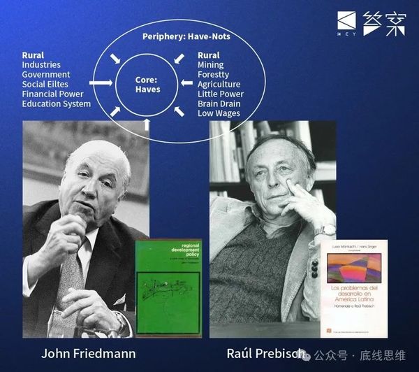今天我想跟大家分享的是,发生在中国的事情,和全球化、和整个世界的关系到底在哪里?早在上世纪五六十年代,在全球化大规模兴起的前夜,就有经济学家——我这里举两个例子,美国的弗里德曼和阿根廷的普雷维什——注意到了一个问题,在全球化过程中,不同国家所具有的经济机会和经济资源是不平等的。他们把在全球化过程中的国家分成两类,形象的说,就是全球化的中心和全球化的边缘。有些国家属于全球化的中心,有些国家属于全球化的边缘。