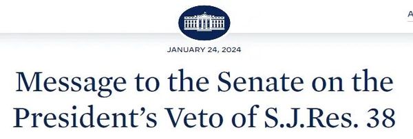 当地时间24日,拜登又否决了共和党的这份否决提案,称短期豁免将使电动汽车充电器的安装得以快速推行,这份提案将损害美国国内制造业、就业机会以及清洁能源转型进程,因此予以否决。