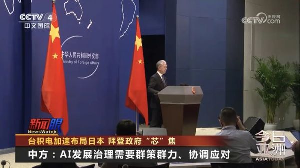 在29日的例行记者会上,中国外交部发言人汪文斌表示,人工智能发展治理攸关全人类命运,需要的是群策群力、协调应对,而不是脱钩断链、围栏筑墙。