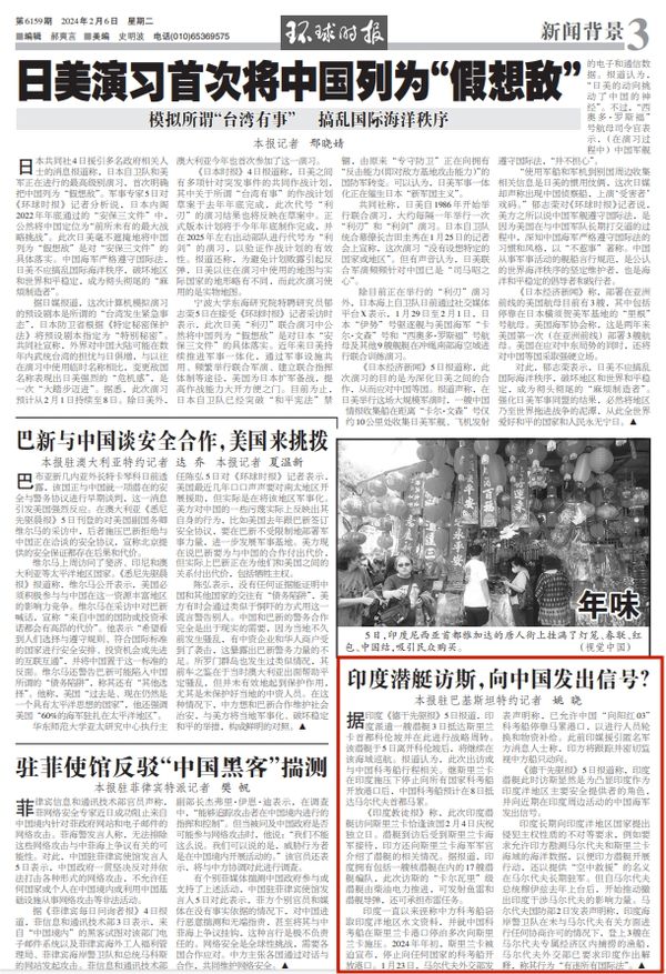 《德干先驱报》5日报道称,印度潜艇此时访斯显然是为凸显印度作为印度洋地区主要安全提供者的角色,并向近期在印度周边活动的中国海军发出信号。