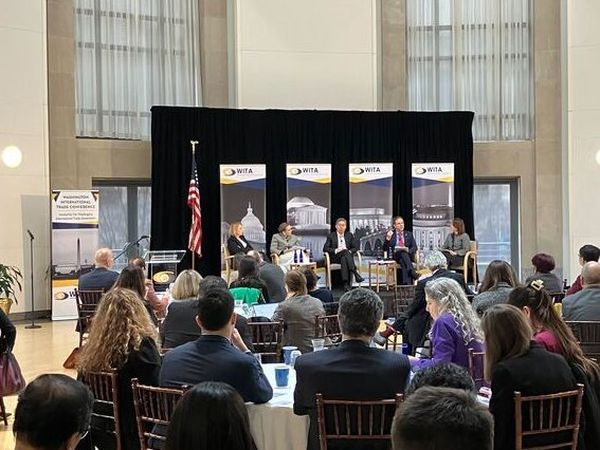 来自哥斯达黎加、新加坡、墨西哥的大使以及欧盟的外交官参加华盛顿国际贸易协会圆桌会议 图自华盛顿国际贸易协会官方X平台账号