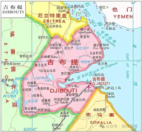 编者按:位于非洲东北部非洲之角的吉布提,濒临红海和亚丁湾,隔曼德海峡与也门相望,共同扼守红海出海口。从吉布提到也门的海上最短距离仅18海里。今年初,红海危机爆发后,吉布提的地理位置在政治、经贸上的重要性凸显。