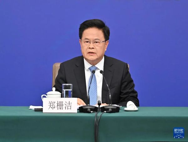 3月6日,十四届全国人大二次会议在北京梅地亚中心新闻发布厅举行记者会。国家发展和改革委员会主任郑栅洁、财政部部长蓝佛安、商务部部长王文涛、中国人民银行行长潘功胜、中国证券监督管理委员会主席吴清就发展改革、财政预算、商务、金融证券等相关问题回答中外记者提问。这是郑栅洁在回答记者提问。新华社记者 李鑫 摄
