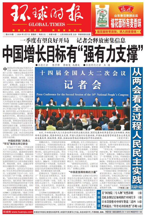 《南华早报》6日的社论称,今年两会的政府工作报告引人注目,它比往常更短、更精练。中国设定的一系列经济目标是稳健的,它反映了中国政府基于大量基层信息对中国面临的经济形势的战略评估。北京认为,中国经济正在经历结构调整阶段,电动汽车等先进制造业的发展就是例证,这是一个经济体向价值链上游迈进过程中发生变化的典型案例。文章称,如果像中国这样规模的经济体能够保持5%的增长率(比如10年),那么人们就有信心它能够实现政策目标。这一评估就是中国没有按下恐慌按钮、采取激进刺激措施的原因。