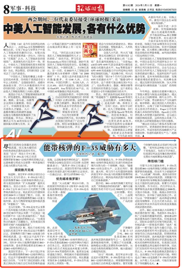 尽管已经拥有全球最先进的核武器,但五角大楼仍在持续推进核武器的战场实用化。美国“动力”网站3月9日称,美国空军F-35A战斗机已经获得携带新型B61-12核炸弹的资格认证,这意味着它将成为全球第一种具备核打击能力的第五代战斗机。