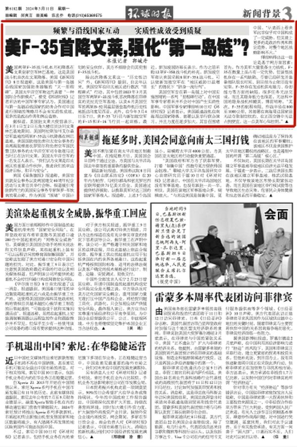 美国两架F-35战斗机本月初降落在文莱皇家空军林巴基地,这是美国战斗机首次在文莱降落。美国《新闻周刊》8日报道称,这是美国与第一岛链沿线国家加强防务接触的“又一里程碑”,美国太平洋空军称这代表着“一种国际合作新模式”。接受《环球时报》记者采访的中国军事专家认为,美国通过与第一岛链沿线国家的防务合作对中国进行围堵的策略并不会有实质性成效,更多的是政治作秀和舆论造势。