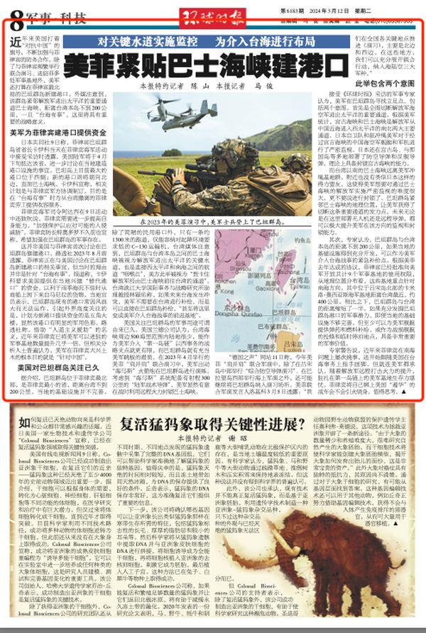 近年来美国打着“对抗中国”的旗号,不断加强与菲律宾的防务合作。除了与菲律宾频繁举行联合演习、进驻菲多处军事基地外,美军还打算在菲律宾最北部的巴坦群岛新建港口。外媒注意到,该群岛紧邻解放军进出太平洋的重要通道巴士海峡,距离台湾本岛不到200公里,一旦“台海有事”,这里将具有重要的战略意义。
