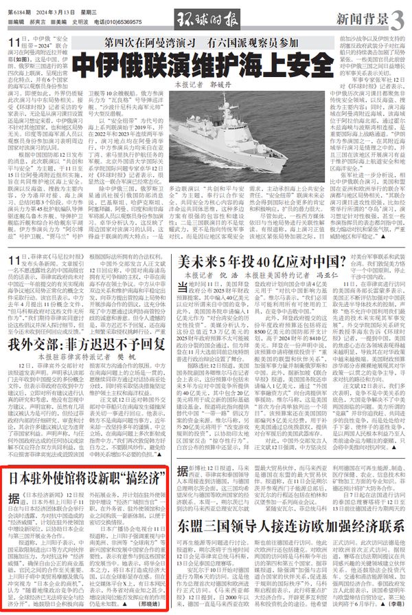 日本广播协会电视台11日报道称,上川阳子强调重视与中南美洲、非洲等“全球南方”等新兴国家和发展中国家合作的重要性,表示有意参与到这些国家的发展当中。她表示,将举全日本之力,将日本打造成经济大国,以在全球彰显存在感。但在社交媒体平台X上,有日本网民表示,外务省对商业知之甚少,增设该岗位能否发挥应有的作用仍是未知数。
