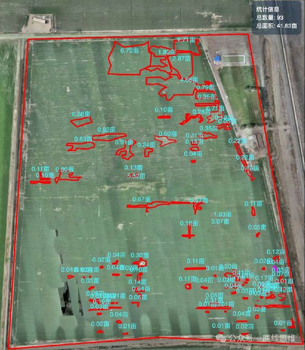 我们主要通过农业物联网设备监测环境信息,确认播种时机;在自动化播种后,利用遥感无人飞机普查出苗率。基于遥感无人飞机为棉⽥拍摄的⾼清数字地图,智慧农业管理系统通过⼈⼯智能对棉花基本苗进行分析,让我们能及时针对缺苗区域采取补播措施。
