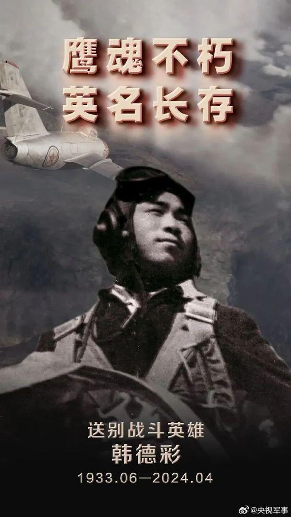 据@央视军事 报道,今天(4月1日),空军二级战斗英雄韩德彩逝世,享年91岁。……