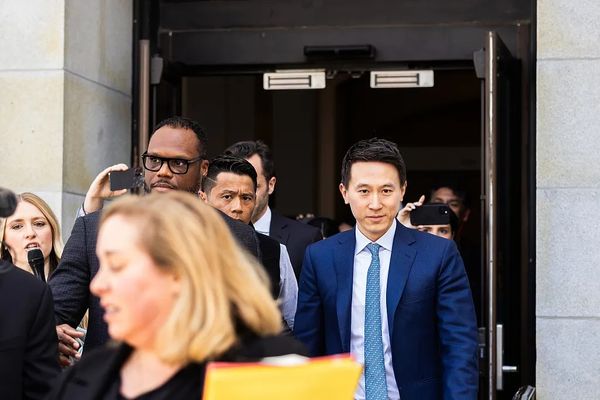 当地时间3月14日,TikTok首席执行官周受资在与民主党参议员约翰·费特曼会面后离开 图源:视觉中国
