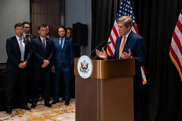 2023年7月19日,北京,美国总统气候问题特使约翰·克里在新闻发布会上发表讲话 图源:视觉中国