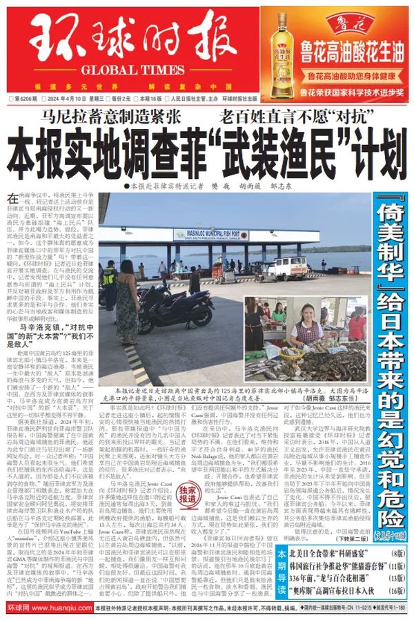 武汉大学边界与海洋研究院教授雷筱璐接受《环球时报》记者采访时表示,2016年,中国从人道主义出发,允许菲律宾渔民在黄岩岛附近海域从事小规模手工捕鱼作业,尽量不影响他们的生计。2016年至2023年,中国一直坚守承诺,菲渔民的生计从未受到影响。但菲当局于2023年下半年开始向中国黄岩岛领海派遣公务船后,情况发生了变化。中国不得不作出反应,驱逐菲律宾公务船。今年以来,菲律宾方面表现得越来越具有挑衅性,其公务船多次集结菲律宾渔船侵闯黄岩岛附近海域。