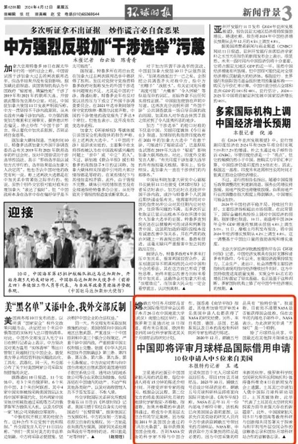 2020年12月,嫦娥五号完成我国首个无人月球采样返回任务,带回1731克月球样品。2023年10月,嫦娥五号总设计师胡浩宣布,嫦娥五号月球科研样品即将面向国际开放申请。《南华早报》称,NASA在去年11月一份内部电子邮件中称,该机构已向美国国会表明意图,以求允许其资助的研究人员向中方申请获取嫦娥五号带回来的月球样品。NASA称,申请获取中方采集到的样品是必要的,因为中国采集的样品具有“独特价值”。报道称,目前尚不清楚NASA是否能获得国会批准,但在去年的内部电子邮件中,NASA表示,为此次研究申请“开绿灯”是一个特例。