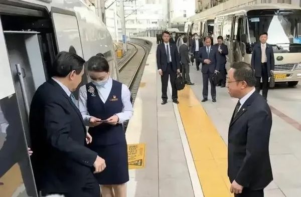 4月7日下午,马英九乘高铁从西安至北京,座车直接开上月台迎接。(图片来源:网络)