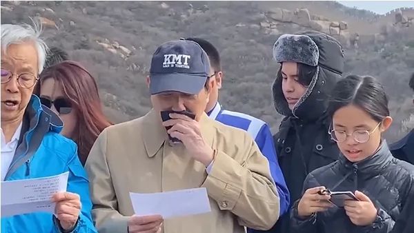 9日上午,马英九一行登长城游览,唱《长城谣》时,马英九一度哽咽。(图片来源:网络)